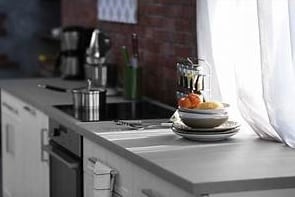 El ambiente de trabajo, a expensas del tamaño, sin embargo, debe ser cómodo y funcional.. A menudo es posible obtener una superficie de apoyo entre el fregadero y la zona de cocción por una cuestión de comodidad, ya que en este caso no habrá necesidad de moverse durante la preparación de los platos.